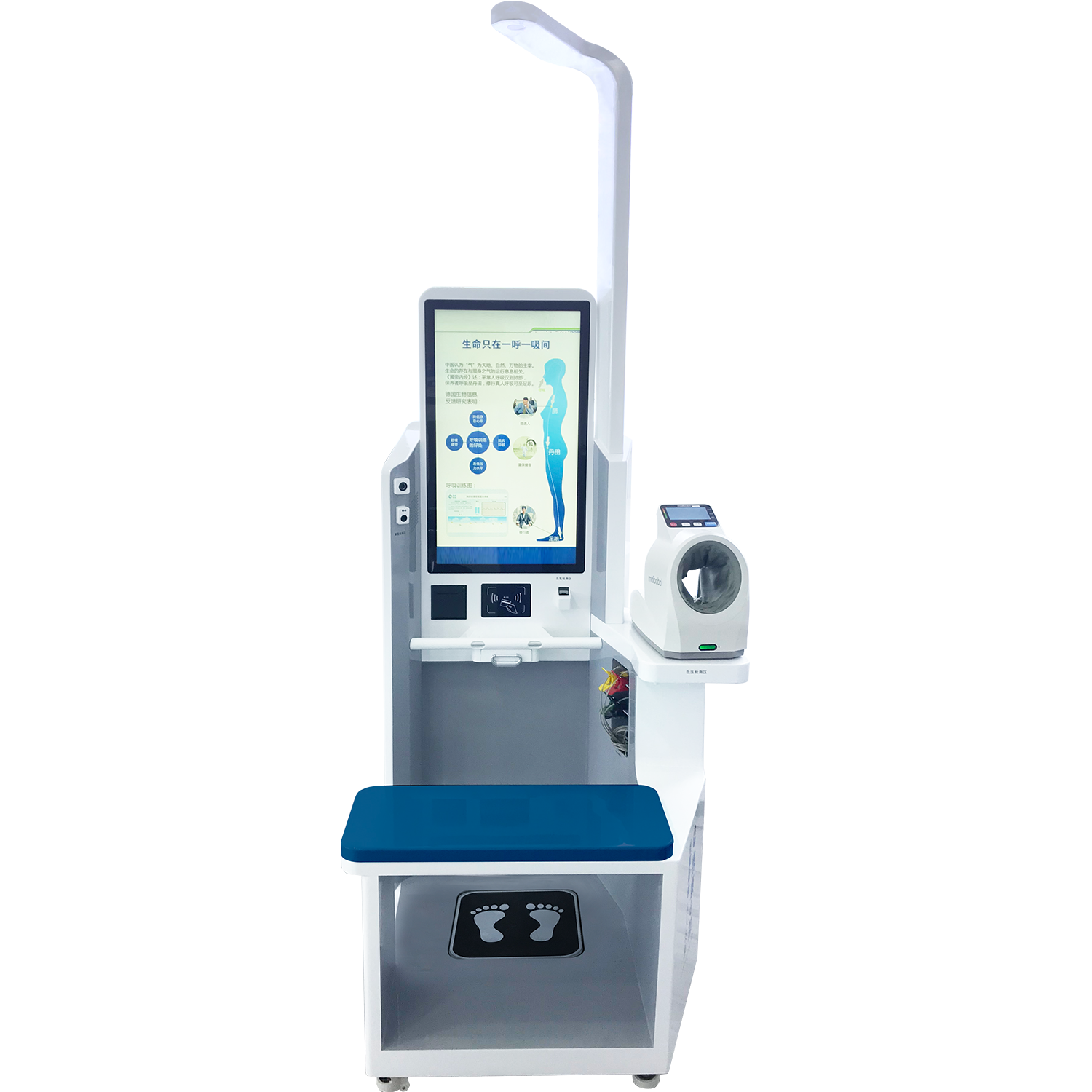 标准配置:身高、体重、BMI、人体成分、血压、脉率、心电、血氧、体温、血糖、尿酸、总胆固醇、中医九型体质辨识